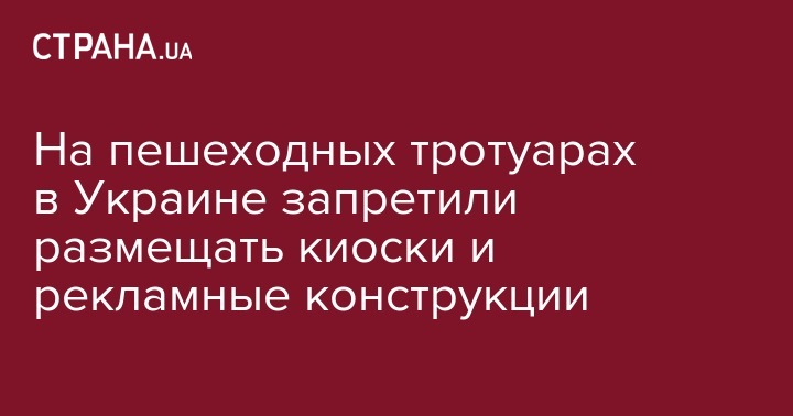 На пешеходных тротуарах в Украине запретили размещать киоски и рекламные конструкции