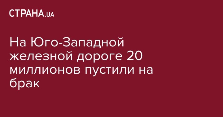 На Юго-Западной железной дороге 20 миллионов пустили на брак