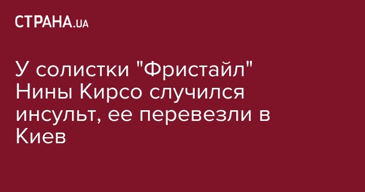 Украинская певица и солистка группы "Фристайл" Нина Кирсо попала в больницу с тяжелым инсультом еще 1 июля. Ее перевели из полтавской клиники в Киев. Об этом сообщает "КП в Украине".