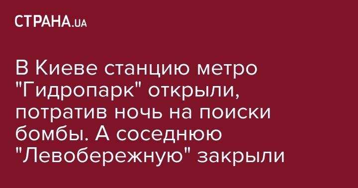 В Киеве станцию метро "Гидропарк" открыли, потратив ночь на поиски бомбы. А соседнюю "Левобережную" закрыли