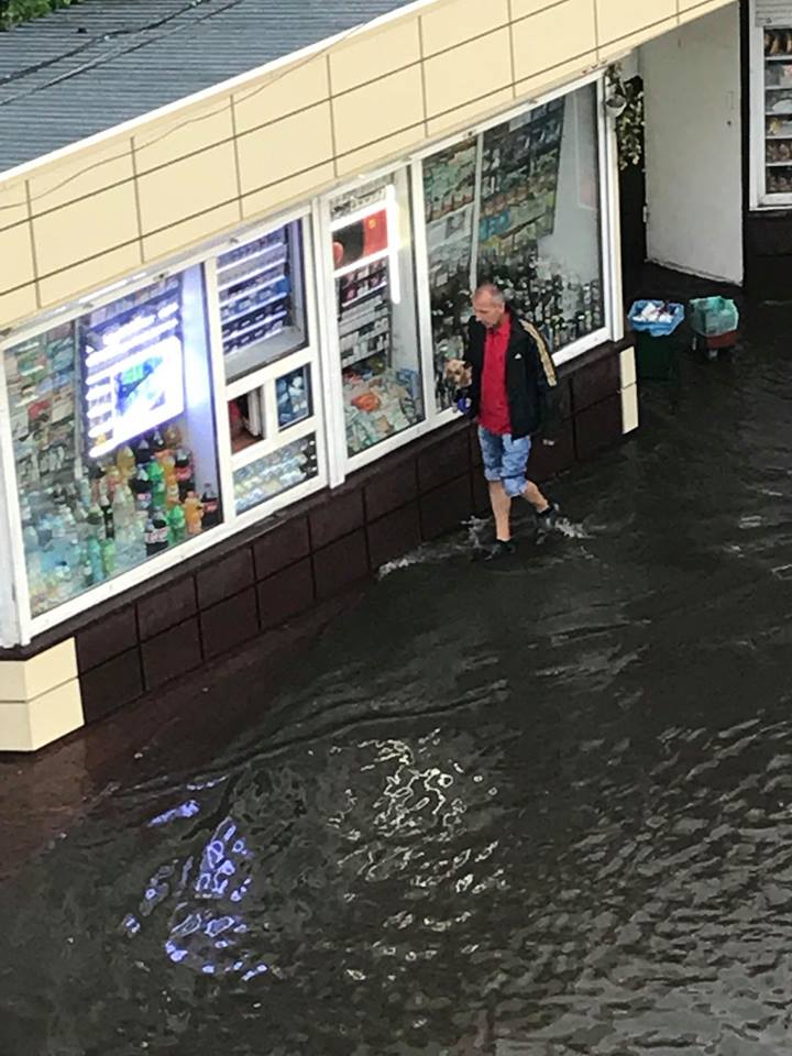Кое-где вода доходила людям по колено. И смывала даже номерные знаки на машинах. Пользователи социальных сетей в шутку называли свой город "Хмельнеция".