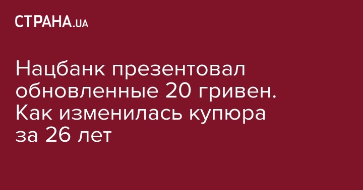 Нацбанк презентовал купюру номиналом 20 гривен с обновленным дизайном, которую введут в оборот в сентябре. Это уже четвертый редизайн купюры с 1992 года.