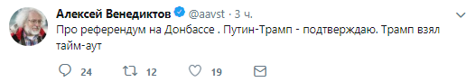 "Про референдум на Донбассе. Путин-Трамп - подтверждаю. Трамп взял тайм-аут.