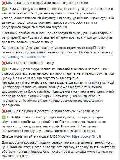В Facebook она прокомментировала мифы, которые собрала врач-кардиолог Лариса Мищенко.