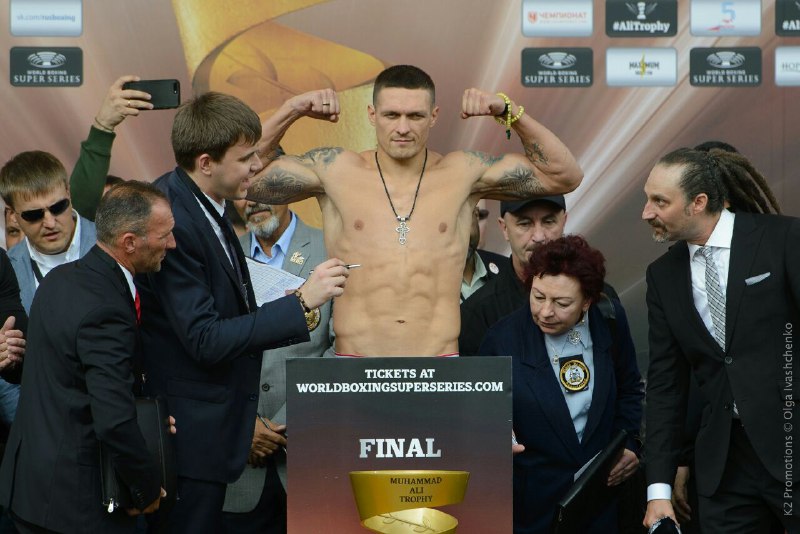 На взвешивании оба спортсмена показали одинаковый вес — 89,9 килограммов. Добавим,  что это самый легкий вес украинца за время участия на турнире, который длится уже год. Перед первым боем против Марко Хука Усик весил 90,5 кг, а перед Майрисом Бриедисом — 90,4 кг.
