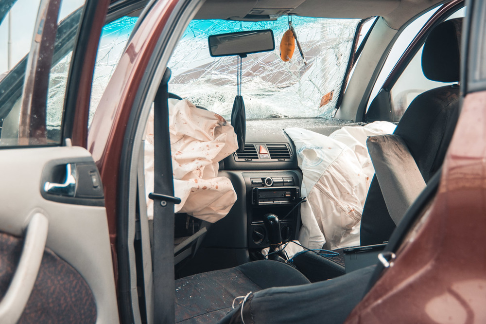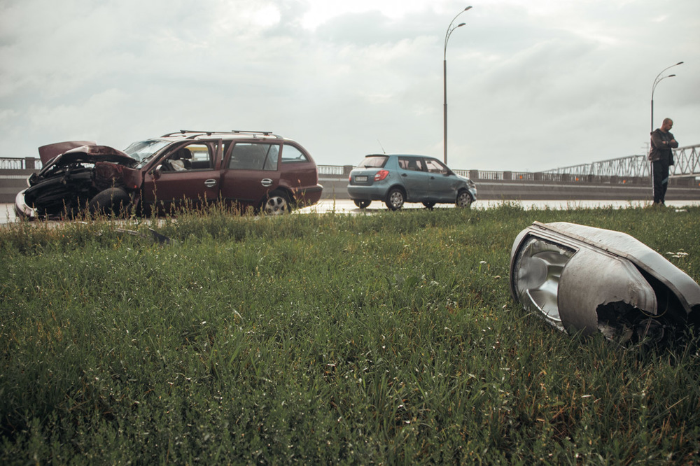 От удара о столб у его автомобиля разбита вся передняя часть, а двигатель выпал на асфальт. Водитель второй машины не пострадал.
