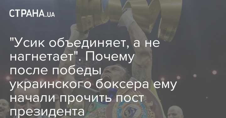 В целом, Усик продолжил линию своих публичных выступлений, в которых старается не нагнетать напряжения по конфликтным линиям, а наоборот, выступает в роли примирителя и миротворца. Поэтому, что уникально для нашего времени, его победу многие с радостью восприняли и в Украине, и в России. А в нашей ей радовались как "майдановцы" (за исключением самой "ястребиной" категории последних), так и "антимайдановцы". Что вообще является, пожалуй первым подобным прецедентом с начала 2014 года.