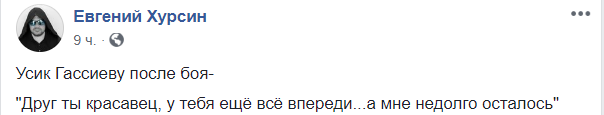 "Усик Гассиеву после боя - "Друг ты красавец, у тебя ещё всё впереди...а мне недолго осталось"".