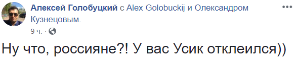"Ну что, россияне?! У вас Усик отклеился", - пишет близкий к Банковой и "Народному фронту" политолог Алексей Голобуцкий.