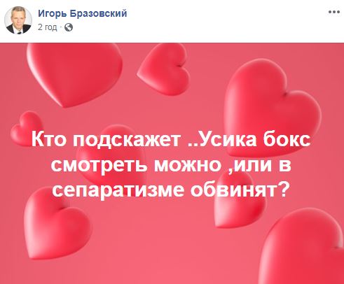"Кто подскажет, Усика бокс смотреть можно, или в сепаратизме обвинят?" – иронизирует луганчанин Игорь Бразовский.