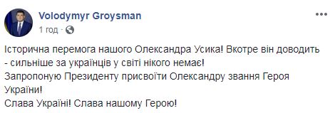 "Предложу президенту присвоить Александру звание Героя Украины!" - написал премьер-министр Владимир Гройсман.