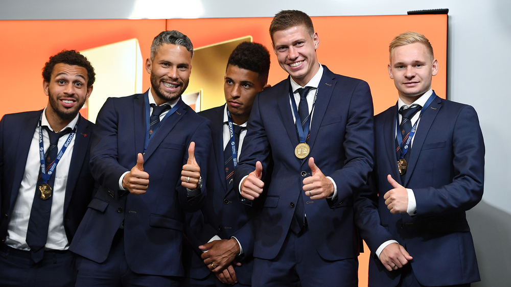 "Горняки" получили золотые медали сезона-2017-2018, а капитан команды Тайсон поднял чемпионский кубок.