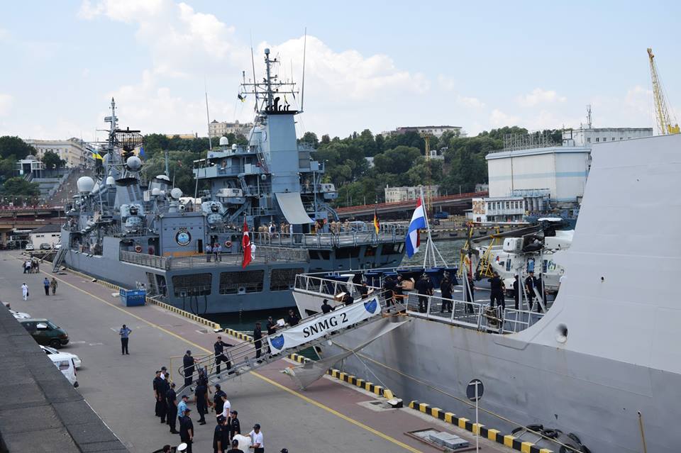 В частности, в Одессу прибыли: фрегат Королевских ВМС Нидерландов "DE RUYTER", фрегат Турецкой Республики "FATIH", фрегат МС Румынии "REGELE FERDINAND", и Постоянной противоминной военно-морской группы НАТО № 2 (SNMCMG2) - вспомогательное судно ВМС ФРГ "RHEIN" минный тральщик ВМС Турции "ANAMUR" и минный тральщик МС Румынии "LUPU DINESCU".