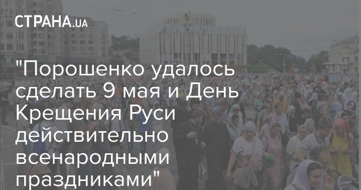 "Есть две даты, которые Порошенко сумел сделать действительно всенародными праздниками. Это 9 мая и День Крещения Руси. Теперь на них выходят даже те, кто не ходил отроду, – молодежь, здоровые мужики, известные спортсмены.