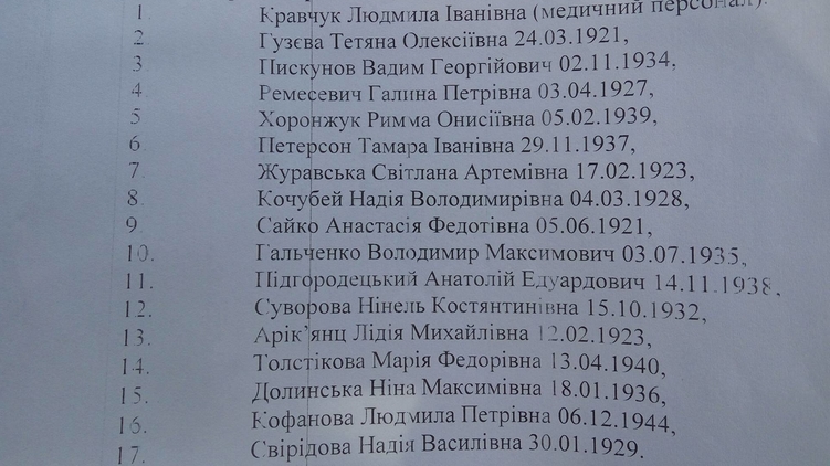 Список погибших постояльцев дома престарелых в Литочках, фото: Страна