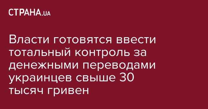 Власти готовятся ввести тотальный контроль за денежными переводами украинцев свыше 30 тысяч гривен