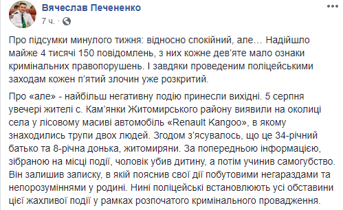 Позже выяснилось, что это жители Житомира, отец и дочь. По предварительной информации, мужчина убил ребенка, а затем совершил самоубийство.