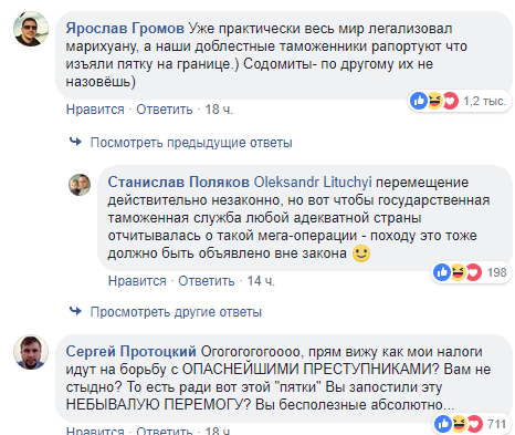 Пост в Facebook о том, как Ягодинская таможня похвасталась изъятием каннабиса, которого не хватит даже на один косяк, стал одним из самых популярных за время существования ГФС. За сутки у него более тысячи комментариев и почти полтысячи репостов. Пользователи активно обсуждают "спецоперацию".