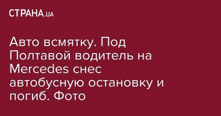 Авто всмятку. Под Полтавой водитель на Mercedes снес автобусную остановку и погиб. Фото
