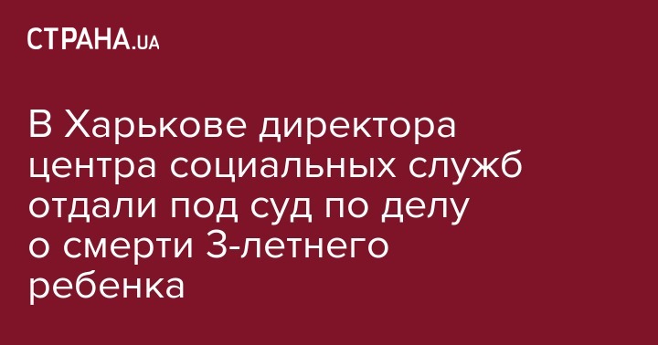 Харьковская местная прокуратура № 2 утвердила и направила в суд обвинительный акт в отношении директора Центра социальных служб для семьи, детей и молодежи одного из районов города, подозреваемой в служебной халатности, повлекшей смерть 3-летнего мальчика (ч.2 ст.367 УК Украины).