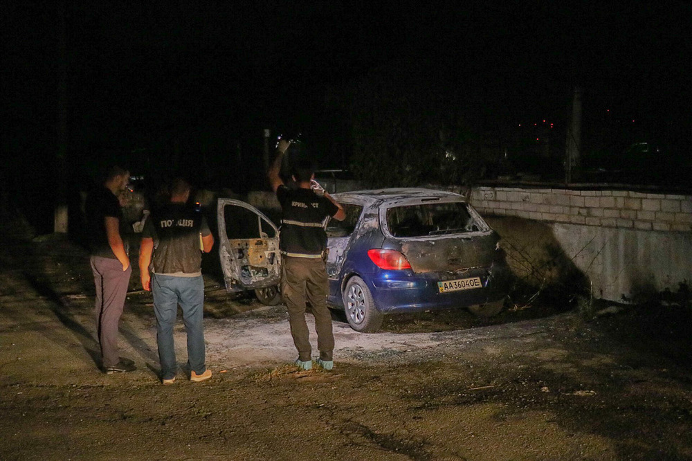 Появились фото сгоревшей машины, на которой скрылись участники кровавого ограбления ювелирки в Киеве