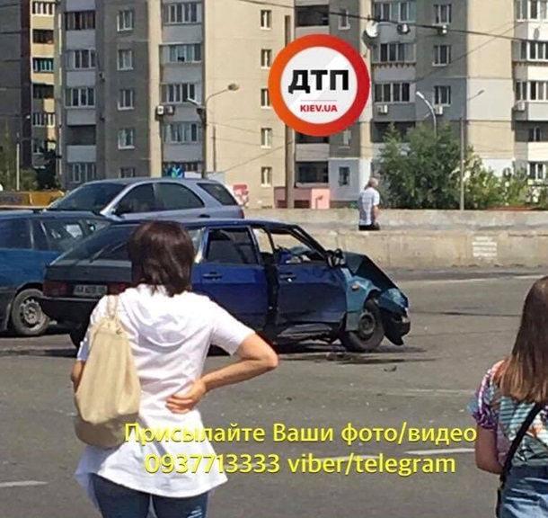 В понедельник, 13 августа, в Киеве на Троещине, в результате столкновения "Волги" и "Девятки", один из автомобилей вылетел на тротуар в толпу людей.