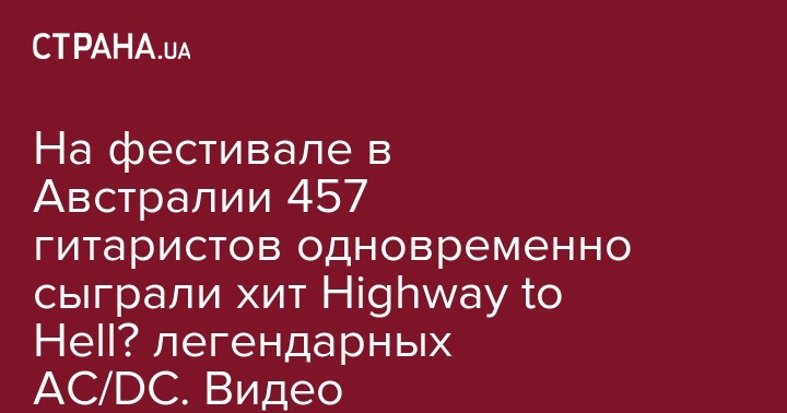 В австралийском Сиднее прошел рок-фестиваль, на котором зрители стали свидетелями необычного шоу. Здесь, впервые в истории 457 участников рок-фестиваля в Сиднее и простых зрителей, одновременно исполнили на электрических гитарах хит австралийской рок-группы AC/DC Highway to Hell‍ (Дорога в ад - Прим. Ред.). Видео исполнения песни опубликовано в YouTube.
