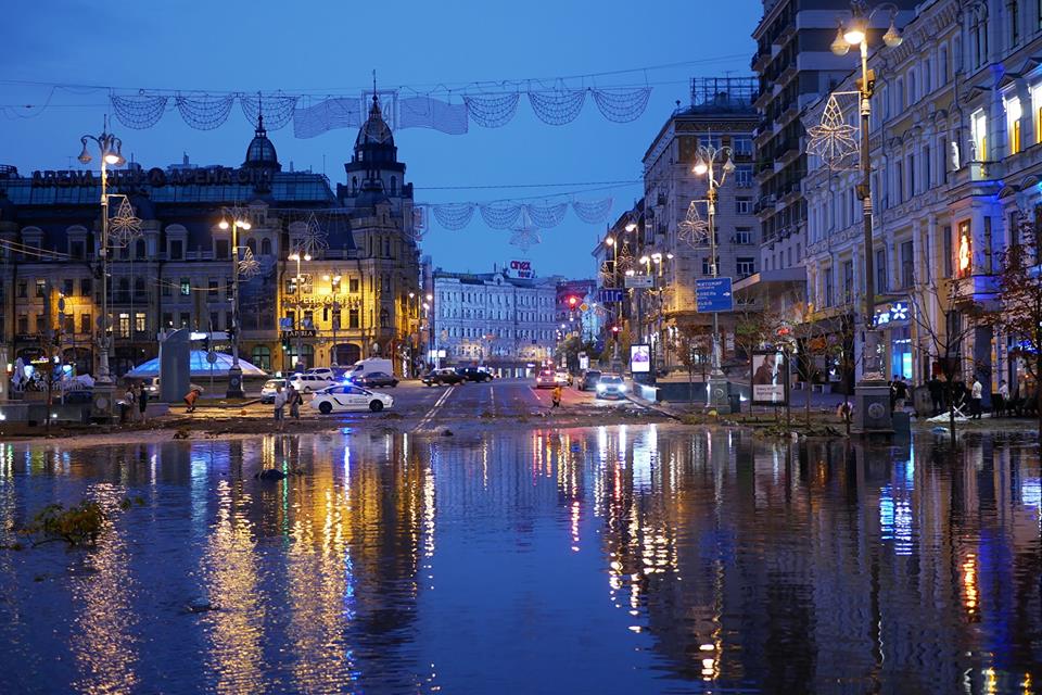 Крещатик на время ливня превратился в бурлящую реку. Когда вода схлынула, на дороге остались горы мусора, которые с утра принялись убирать коммунальщики. Они достают листья и ветки из ливневок. У многих деревьев сломаны ветки.