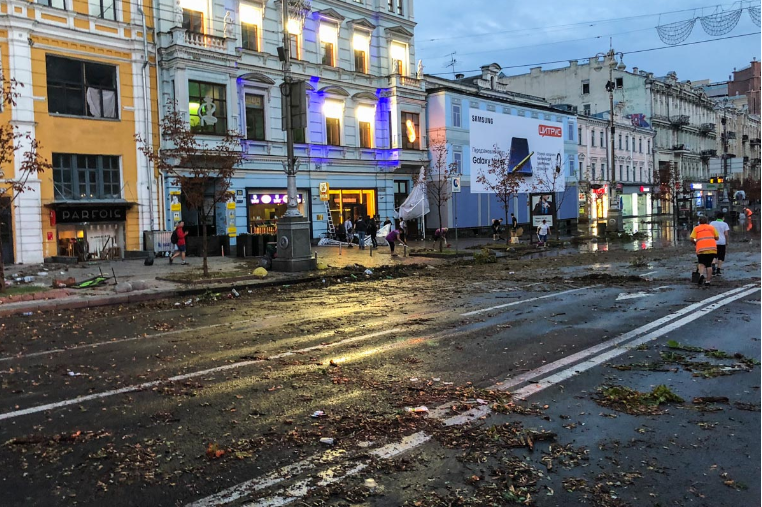 Буря в Киеве превратила Крещатик в большую и затопленную мусорную свалку. Фото