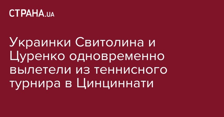 Украинские теннисистки Элина Свитолина и Леся Цуренко вылетели из турнира Женской теннисной ассоциации (WTA) серии Premier 5 (Western & Southern Open) в Цинциннати (США). Об этом сообщает "Укринформ".