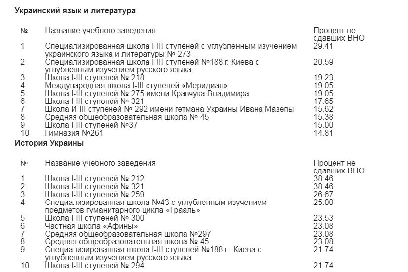 В антирейтинг попало немало спецшкол. Причем выпускники спецшколы с углубленным изучением украинского языка умудрились набрать меньше всего баллов именно по украинскому языку и литературе.
