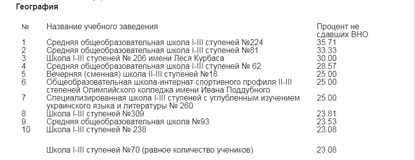 Для оценки учитывалась статистика ВНО по предметам, которые сдавали чаще всего: украинский язык и литература, математика, история Украины, английский и география.