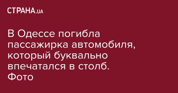 Сегодня утром, 23 августа, в Одессе автомобиль врезался в опору электроосвещения. В результате погибла женщина-пассажирка, а водитель находится в тяжелом состоянии. Об этом сообщили в пресс-службе патрульной полиции Одесской области.