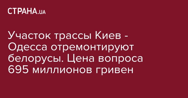 Белорусская компания "Белавтодор" выиграла тендер на ремонт участка трассы Киев - Одесса, и восстановит дорожное полотно за 695 млиллионов гривен.