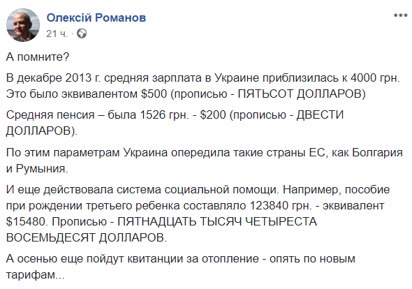 А осенью еще пойдут квитанции за отопление - опять по новым тарифам...", - пишет журналист Алексей Романов.