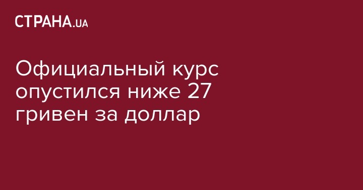 Однако официальный курс впервые с марта прошлого года опустился ниже 27 гривен за доллар до 27,01.