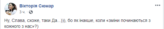 В частности, нардеп Виктория Сюмар, которая была на концерте написала, что об этом свидетельствует его посыл о переменах, которые начинаются с каждого.