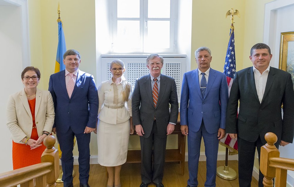 В День независимости Украины Советник Президента США по национальной безопасности Джон Болтон и посол США в Украине Мари Йованович встретились с лидерами политических партий и фракций Украины. Фото: twitter.com/USEmbassyKyiv