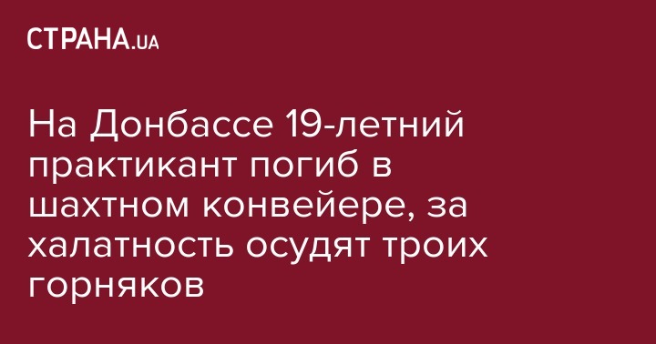 "Грубое пренебрежение положениями закона Украины "Об охране труда", Горного закона Украины и Инструкции по обучению работников шахт со стороны указанных лиц привело к смертельному травмированию юноши", - сказано в сообщении.