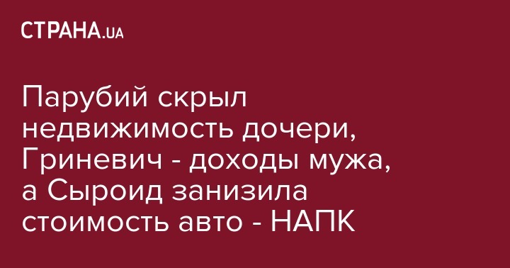 Специалисты Национального агентства по предупреждению коррупции (НАПК) нашли недостоверные данные во время полных проверок деклараций спикера Верховной Рады Андрея Парубия, заместителя председателя ВР Оксаны Сыроид, министра Кабмина Александра Саенко, министра образования Лилии Гриневич и других топ-чиновников. Об этом говорится в ответе НАПК на запрос "Украинской правды".