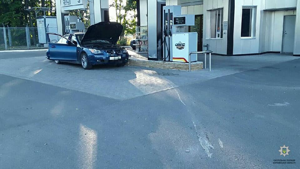 Через несколько минут уже на Салтовском шоссе BMW столкнулся с Mercedes-Benz, после чего наехал на автозаправку.