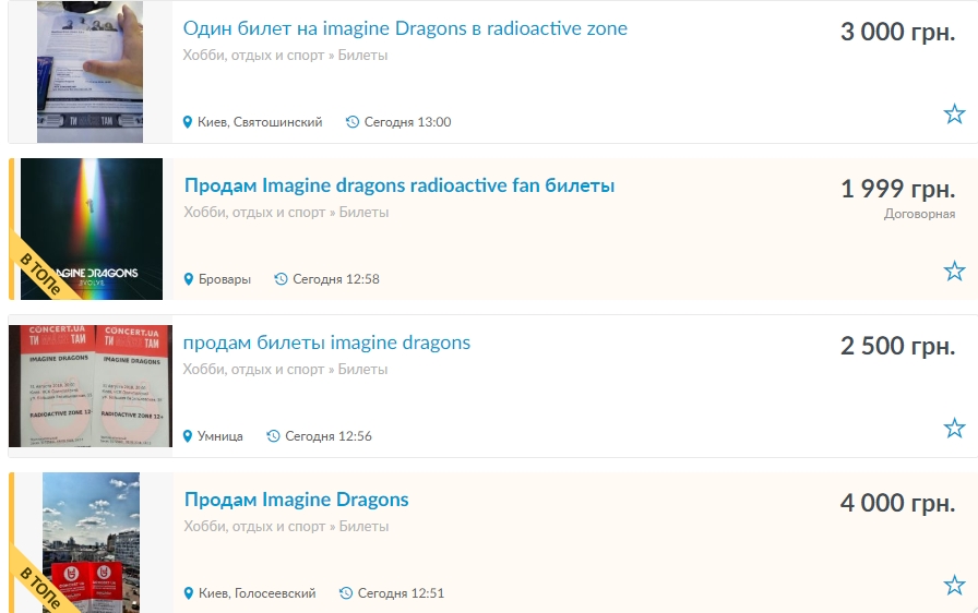 Примерно такие же цены и на сайте OLX. В обычную фанзону предлагают билеты от 1250 до 2000 гривен, в зону Radioactive – от 3 тысяч до… восьми.