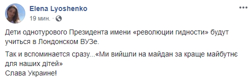 Адвокат Елена Лешенко: " Дети однотурового Президента имени "революции гидности" будут учиться в Лондонском ВУЗе.
