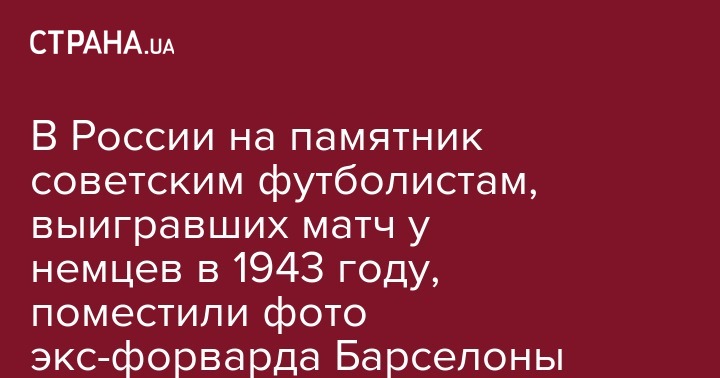 В России на памятник советским футболистам, выигравших матч у немцев в 1943 году, поместили фото экс-форварда Барселоны Бояна Кркича