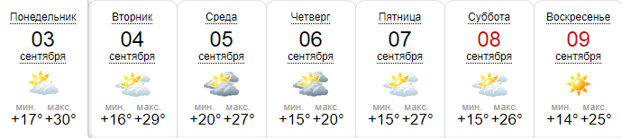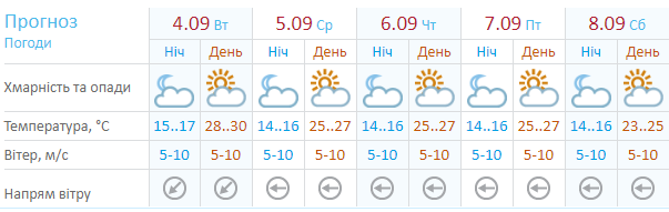 По данным сайта Sinoptik.ua, в целом неделя будет сухой и теплой: до +25...+30. Но в пятницу, 7 сентября, днем воздух прогреется всего до +20. Ночью +14...+15.
