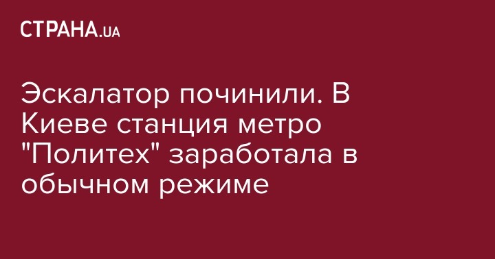 Эскалатор починили. В Киеве станция метро "Политех" заработала в обычном режиме