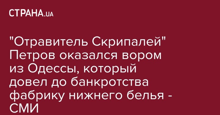 Россиянин Александр Петров, которого в Британии считают одним из отравителей Сергея и Юлии Скрипаль, был судим за кражу в Одессе и довел до банкротства фабрику нижнего белья в Одесской области. Об этом сообщает RT.