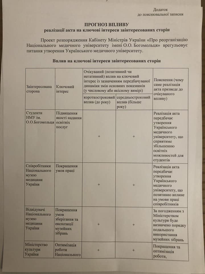 Народный депутат Ольга Богомолец на своей странице в Fаcebook написала, что Минздрав и Кабмин хотят лишить национальный медицинский университет имени Александра Богомольца  его имени из-за слияния с национальным музеем медицины. Таким образом будет образован Украинский медицинский университет, который уже не сможет носить имя Богомольца.