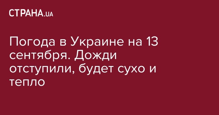 Сегодня, 13 сентября, в Украине ожидается сухая и теплая погода с дневной температурой до +29 С° и все еще не очень холодными ночами. Об этом сообщает Гидрометцентр.
