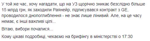 В то же время, хочу напомнить, что в УЗ ежегодно исчезает бесследно больше 15 млрд грн, как заходили Раянейр, подписывался контракт с GE, проводилось дноуглубление - не знает только ленивый.